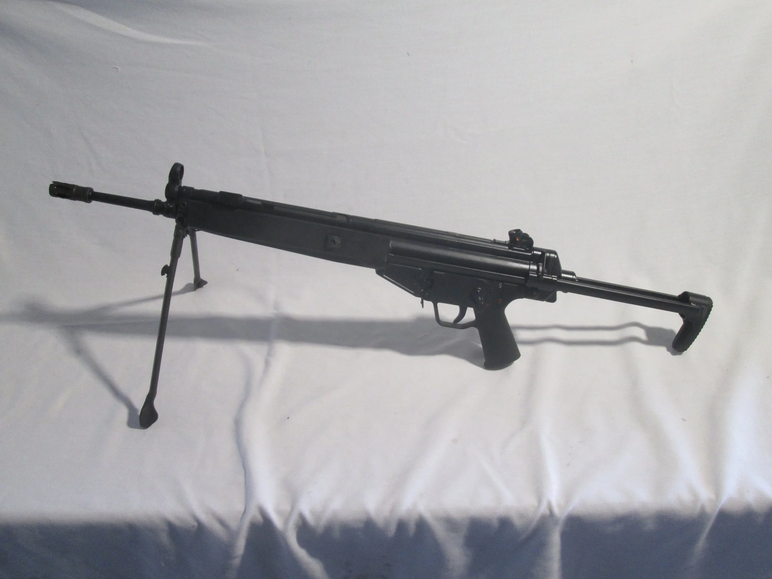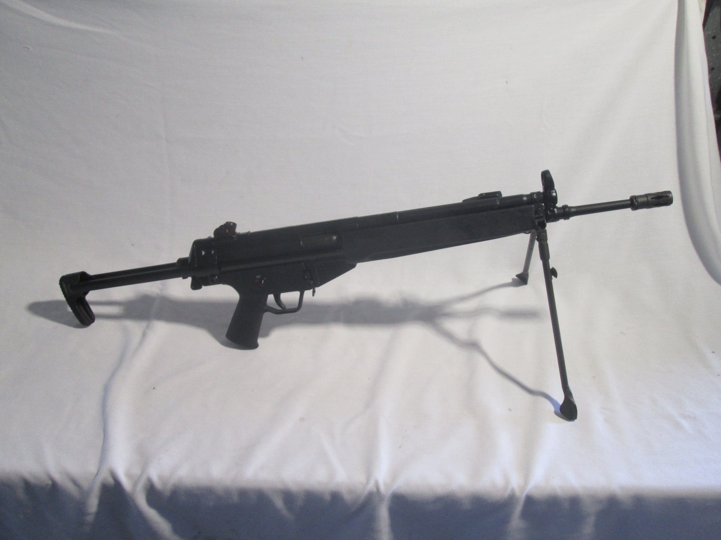 HK33A3 THIS IS A FACTORY HK93 THAT WAS CONVERTED IN THE 1980s , THIS GUN FEATURES A FACTORY HK RETRACTABLE STOCK AND A FACTORY HK METAL BIPOD , HAS A SEF CLIP ON LOWER AND HAS BEEN REMARKED HK33. COMES WITH FULL STOCK A 2 25RD MAGS. PRICE IS 28000.00